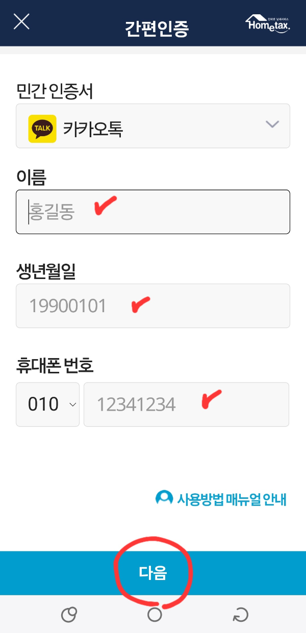 - 국세청에서 보내는 공식 안내문(카카오톡, 네이버 문서 등)을 꼭 확인하세요. 사칭 메시지를 주의하셔야 합니다!